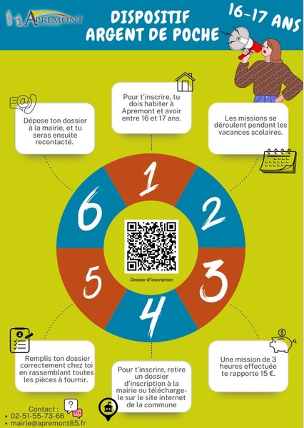 Ce dispositif offre la possibilité aux jeunes d'Apremont, qui sont âgés de 16 à 17 ans révolus, d'effectuer des missions de proximité à l'occasion des vacances scolaires. Le jeune qui participe à ce dispositif reçoit une indemnisation de 15€ pour trois heures de missions.