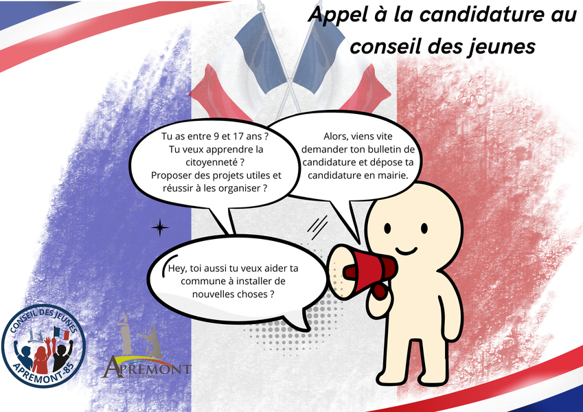 De nouvelles places au sein du Conseil sont donc à pourvoir pour les années 2026-2027, tu as entre 9 et 17 ans et tu es motivé pour partager tes idées de projets sur Apremont, alors inscris toi pour entrer dans le Conseil des Jeunes !